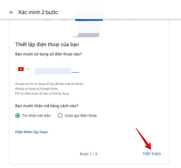 Làm tiếp theo hình nhập số điện thoại của bạn và chọn nhận mã xác nhận qua tin nhắn hay cuộc gọi đều được