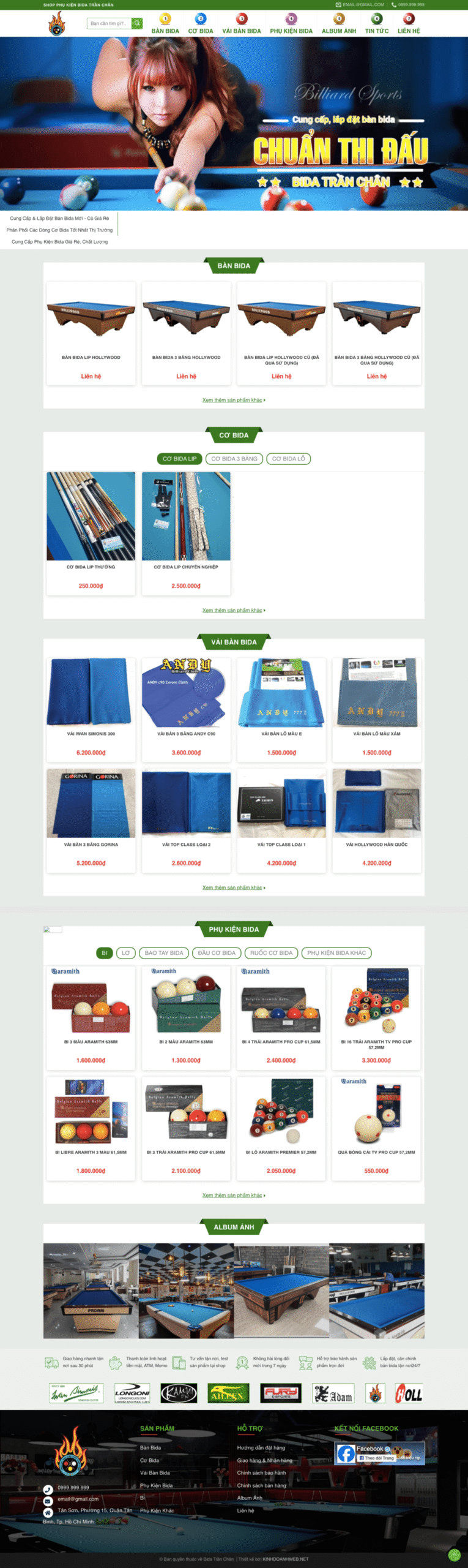 Phụ kiện bida – Mẫu website bán các sản phẩm phụ kiện bida
