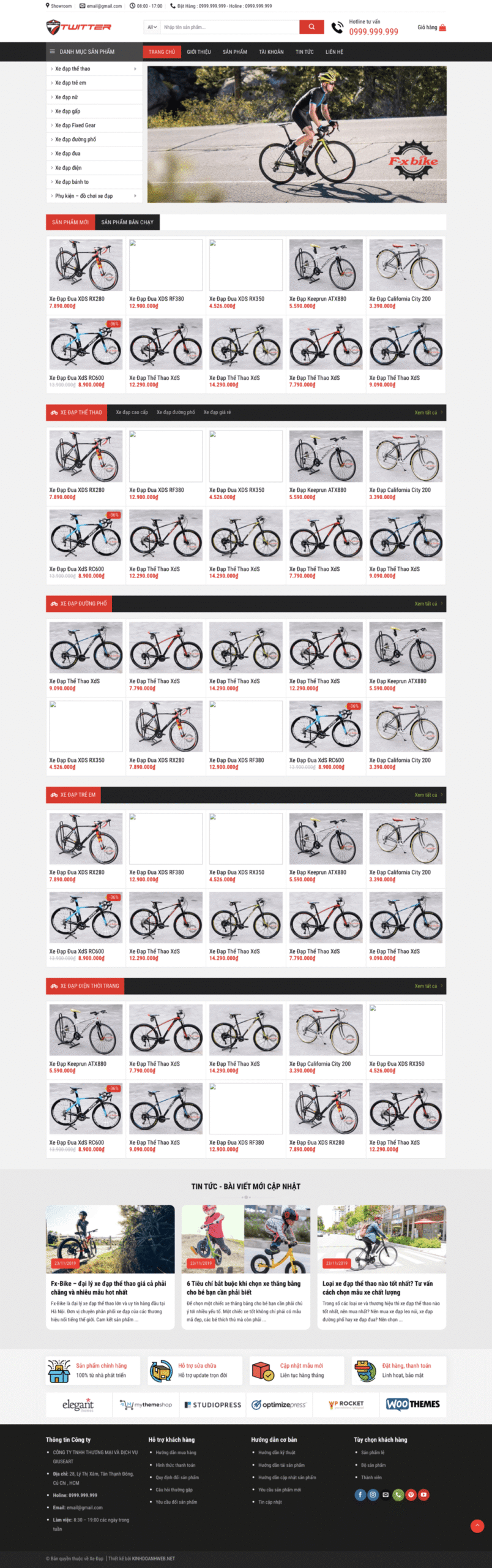 Xe đạp – Mẫu website giới thiệu và bán xe đạp